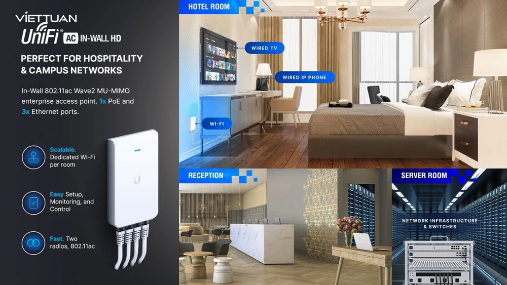 Camera Wifi Chính Hãng Unifi Access Point UniFi UAP-IW-HD Access Point UniFi UAP-IW-HD Giá Khuyến Mãi: 4,305,000 ₫ (+ VAT 8%) Giá Niêm Yết:6,150,000 ₫ 30% Thương hiệu Unifi Ngày đăng 5/17/2025 1:56:42 PM Access Point UniFi UAP-IW-HD mang đến hiệu suất vượt trội với công nghệ MU-MIMO 4x4 cho băng tần 5GHz, đảm bảo kết nối ổn định và tốc độ cao cho nhiều thiết bị cùng lúc. Thiết kế gắn tường tối ưu không gian, hỗ trợ VLAN 802.1Q, QoS nâng cao, cách ly lưu lượng khách và quản lý tập trung qua hệ sinh thái UniFi – lý tưởng cho văn phòng, khách sạn. Danh Mục Sản Phẩm Loại camera lắp cho xe nângLắp Camera Kho LogisticsLắp Camera Giá Rẻ NhấtCamera Lắp Phòng Phẩu Thuậtlắp camera chống trộmLoại camera cho công trìnhCamera Nhìn Thấy chữ Màn HìnhLoại camera lắp quày thu ngânBản báo giá camera wifi ezviz mớiCamera Wifi Dahua Báo ĐộngCamera Wifii Dahua Full HD 1080PCamera Wifi Siêu NétLắp Camera Wifi Dahua Xoay 360 Giá RẻCamera Wifi Chống Trộm KbvisionLắp Camera Wifi Có Màu Ban ĐêmCamera Ezviz Báo ĐộngLắp Camera Wifi Ngoài Trời Xoay 360Camera 360 Bao Động DahuaLắp Camera Wifi 360 Full Color HikvisionCamera Wifi Xoay 360Lắp Camera Ip Dahua 360Camera Wifi Hikvision 360Lắp Camera Samsung Xoay 360 Toàn CảnhCamera Wifi Kbvision Ngoài Trời 360 Lắp Camera Theo Nhu Cầu Lắp Camera Văn Phòng Giá RẻLắp Camera Nhà Xưởng Giá RẻLắp Camera Gia Đình Giá RẻLắp Camera Kho Hàng Giá RẻLắp Camera Cửa Hàng Giá RẻLắp Camera Wifi Giá Rẻ Chính HãngLắp Camera Công Trình Giá RẻCamera 360 Giá Rẻ 📖 Thông tin sản phẩm UniFiUAP-IW-HD Thông số kỹ thuật Chính sách bảo hành UniFi AP In-Wall HD – Giải pháp WiFi âm tường nhỏ gọn, mạnh mẽ, đẳng cấp Đặc điểm nổi bật - Chuẩn WiFi 802.11ac Wave 2, hỗ trợ MU-MIMO 4x4 trên băng tần 5GHz, cho tốc độ lên đến 1.733 Mbps, cùng 2x2 MIMO trên băng tần 2.4GHz đạt 300 Mbps. - Hỗ trợ hơn 200 thiết bị kết nối cùng lúc – Lý tưởng cho khách sạn, resort, văn phòng, căn hộ cao cấp. - 5 cổng RJ45 Gigabit, trong đó có 1 cổng PoE passthrough, giúp linh hoạt kết nối các thiết bị khác. - Nguồn cấp PoE chuẩn 802.3af/at – Không cần ổ cắm điện riêng. - Thiết kế nhỏ gọn, âm tường, kích thước chỉ 139.7 x 86.7 x 25.75 mm, trọng lượng 210g. - Quản lý tập trung qua UniFi Controller – Dễ dàng giám sát, cấu hình, nâng cấp. Giới thiệu tổng quan UniFi AP In-Wall HD (UAP-IW-HD) là thiết bị phát WiFi cao cấp của Ubiquiti, được thiết kế đặc biệt để gắn âm tường, giúp tiết kiệm không gian, đảm bảo tính thẩm mỹ mà vẫn cung cấp hiệu suất kết nối mạnh mẽ. Với công nghệ 802.11ac Wave 2 cùng hỗ trợ Beamforming và MU-MIMO, UAP-IW-HD mang lại trải nghiệm internet ổn định, mượt mà, kể cả khi có nhiều người truy cập cùng lúc. Ngoài ra, thiết bị còn hỗ trợ các chuẩn bảo mật cao như WPA/WPA2 Enterprise, giúp đảm bảo an toàn cho toàn bộ hệ thống mạng. Triển khai linh hoạt, quản lý dễ dàng Nhờ được cấp nguồn qua PoE, thiết bị có thể triển khai dễ dàng ở bất cứ đâu mà không cần ổ cắm điện gần kề. Với phần mềm UniFi Controller miễn phí, người dùng dễ dàng: - Quản lý danh sách thiết bị - Giám sát hiệu suất hoạt động - Cấu hình mạng linh hoạt - Cập nhật firmware nhanh chóng Phù hợp cho môi trường nào? UniFi In-Wall HD lý tưởng cho các môi trường yêu cầu cao về hiệu suất và thẩm mỹ: - Khách sạn – Resort – Homestay - Căn hộ cao cấp – Chung cư - Văn phòng – Doanh nghiệp - Showroom – Trung tâm thương mại - Tiết kiệm chi phí với PoE UAP-IW-HD hỗ trợ cấp nguồn PoE với công suất tiêu thụ tối đa 23W, giúp tiết kiệm chi phí dây điện và lắp đặt. Ngoài ra, thiết bị còn có 1 cổng PoE passthrough, hỗ trợ cấp nguồn tiếp cho thiết bị khác – một điểm mạnh đáng giá trong các hệ thống mạng hiện đại. Mua UniFi AP In-Wall HD (UAP-IW-HD) chính hãng tại An Thành Phát Nếu bạn đang tìm kiếm nơi cung cấp bộ phát UniFi In-Wall HD chính hãng, giá tốt cùng chế độ bảo hành uy tín – An Thành Phát là lựa chọn đáng tin cậy. ✅ Cam kết sản phẩm chính hãng 100% ✅ Bảo hành chính hãng, đầy đủ CO, CQ ✅ Hỗ trợ kỹ thuật từ đội ngũ chuyên gia giàu kinh nghiệm ✅ Giao hàng nhanh chóng, lắp đặt tận nơi theo yêu cầu 📞 Liên hệ ngay 0928112399 để được tư vấn và báo giá tốt nhất! 📍 Địa chỉ: 51 Lũy Bán Bích, Phường Tân Thới Hòa Quận Tân Phú, TP.HCM 📦 Nhận hợp đồng, hóa đơn, chứng từ nhập khẩu đầy đủ khi mua hàng! Thông số kỹ thuật UniFiUAP-IW-HD UAP-IW-HD Môi trường Trong nhà Tốc độ vô tuyến 2,4 GHz 300Mbps 2,4 GHz MIMO 2×2 Tốc độ vô tuyến 5 GHz 1733 Mb/giây 5 GHz MIMO 4×4 Kích thước 139,7 x 86,7 x 25,75 mm (5,5 x 3,41 x 1,01″) Cân nặng 210g Giao diện mạng Cổng Ethernet 10/100/1000 Cổng Ethernet thứ cấp (4 Cổng bổ sung) Nút Cài lại Phương pháp điện PoE 802.3af, PoE 802.3at+ Phạm vi điện áp được hỗ trợ 44 đến 57VDC Nguồn điện Bộ chuyển mạch UniFi (PoE) Tiết kiệm điện Được hỗ trợ PoE ra Dòng điện qua 48V (Chân +1, 2; -3, 6) Định hình chùm tia Được hỗ trợ Tiêu thụ điện năng tối đa 11W với PoE Passthrough: 23W Điện TX 2,4 GHz: 23 dBm 5 GH